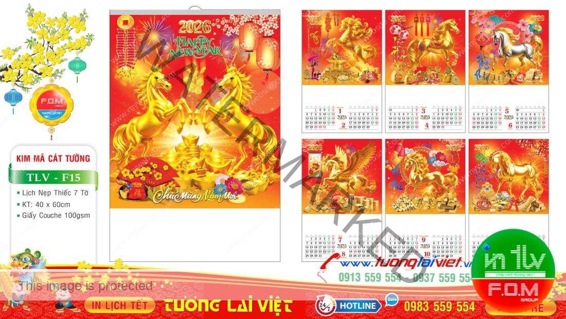 Lịch 7 tờ nẹp thiếc thường được in Offset 1 mặt trên giấy C105gsm, có kích thước: 36×70 và 45x70cm. Lịch 7 tờ Mã Đáo Thành Công là mẫu lịch tờ treo tường giá rẻ nên được nhiều cửa hàng nhỏ lẻ chọn in lịch tết năm nay để làm quà tặng cuối năm cho khách hàng, bạn bè, đối tác và người thân nhân dịp năm mới.